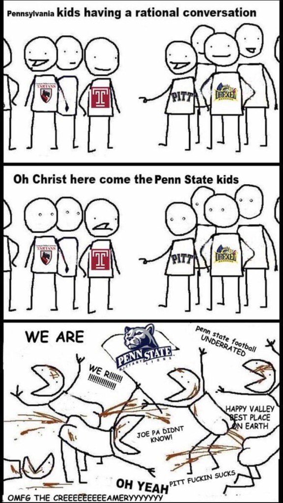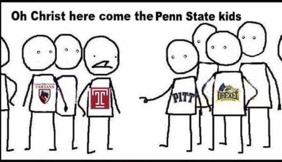 I don’t know what the creamery is, though I think the Joe Pa thing is a little old now, since it’s been years since the Sandusky scandal hit. If you were a freshman when Paterno was fired, you’ve already graduated, unless you’re on the nine-year plan, like my brother-in-law.