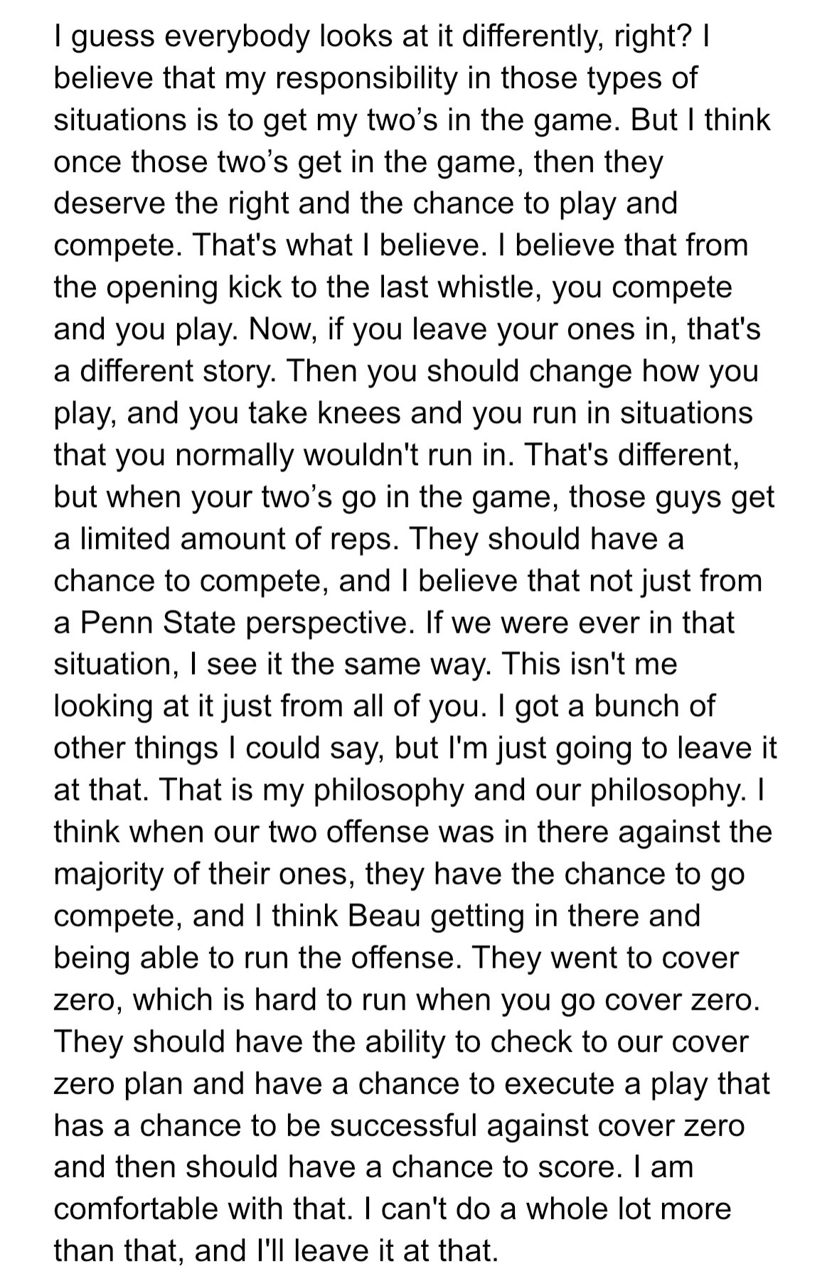 Some people did not realize the context of the situation, or even if they did, still lamented the thought that PSU was running up the score or being a bad winner by deciding not to take a knee. WVU coach Neal Brown, who has the moxie of a ham sandwich, said this: