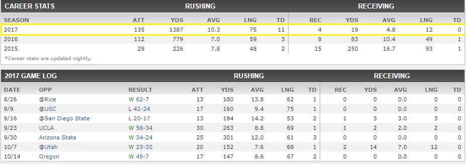 Let’s start with his season stats. The Cardinal running back is averaging 10.3 (!) yards per carry and is on pace for a 2,000 yard and 18 touchdown season: