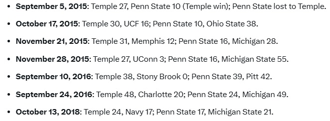 We Had an Ultra-Rare Temple and Penn State Occurrence on Saturday Afternoon