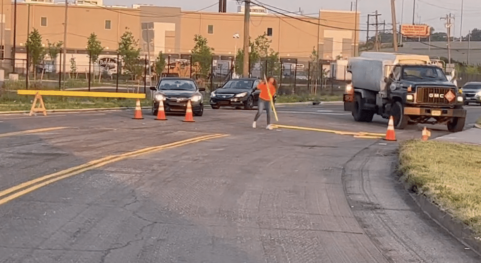 Give this girl a job with streets dept. She got out of her car, tossed the broken barrier aside and then drove thru the closed intersection. pic.twitter.com/9BCDcKzQn2