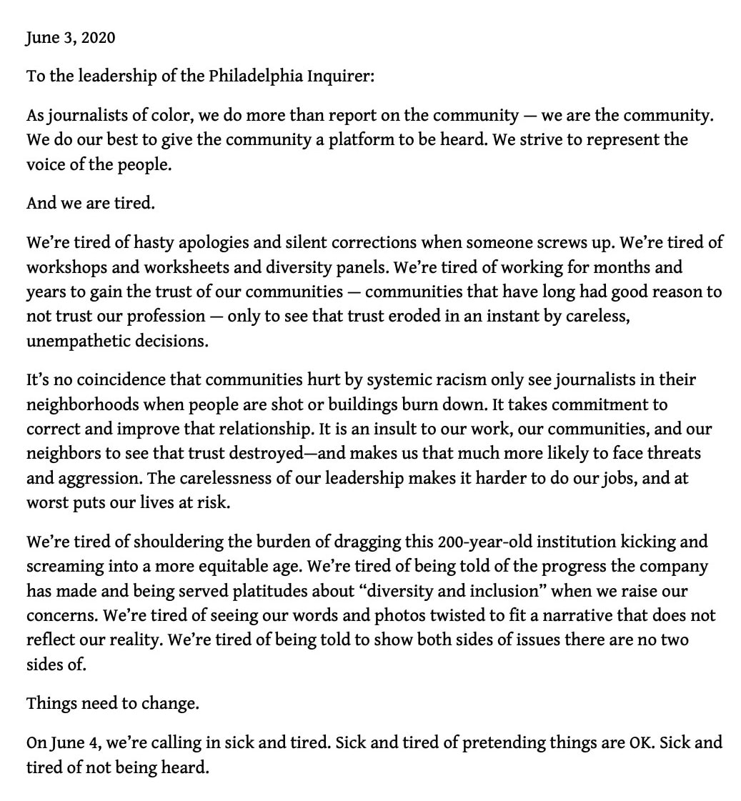 Philadelphia Inquirer Employees Issue Open Letter to Management, Call Out of Work