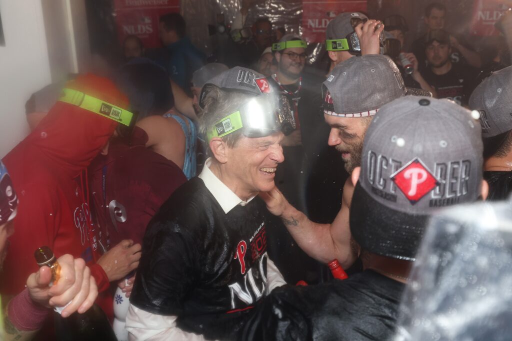 Oh, he celebrated. He was part of the postgame festivities that are becoming routine at Citizens Bank Park. For the fourth time in a calendar year, a temporary carpet was laid down in the clubhouse, large sheets of plastic were taped over the players’ stalls, and tubs filled with Budweiser and champagne bottles, lined either side of the room.