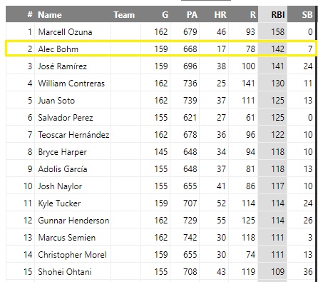 With a five-RBI Sunday, Alec Bohm is up to 42 on the year and on pace to knock in 142 runs, according to FanGraphs’ trusty extrapolator: