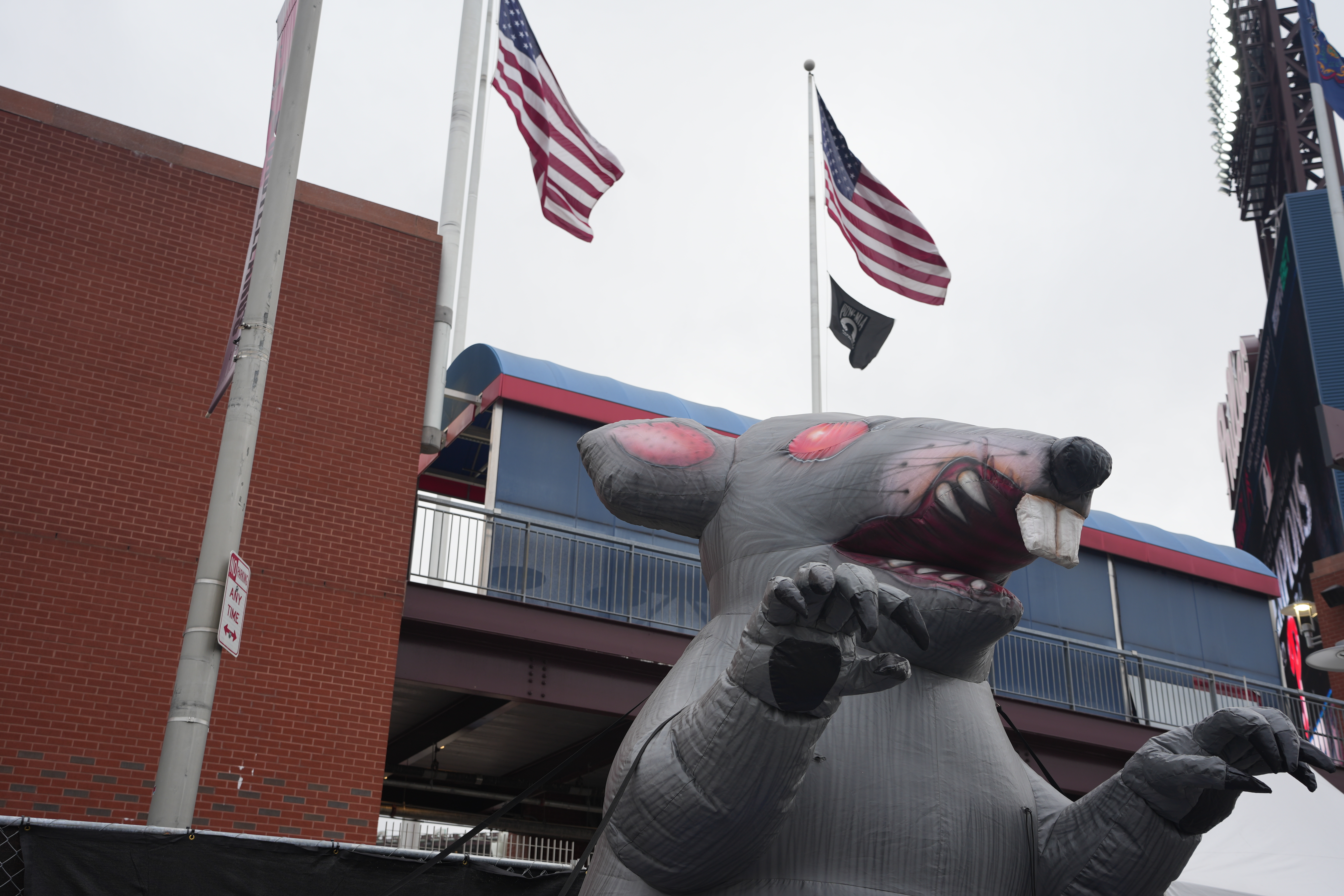 While the strike is going on, Aramark has a contingency plan in place and it seems like there will still be food offered at the stadiums. The union is encouraging fans to “support striking workers by not patronizing Aramark and choosing to tailgate or grab dinner elsewhere ahead of the game instead.” How long this strike will last is not clear. In the meantime, the inflatable cat and rat are out in front of the stadiums, and workers are marching around the stadium in protest.