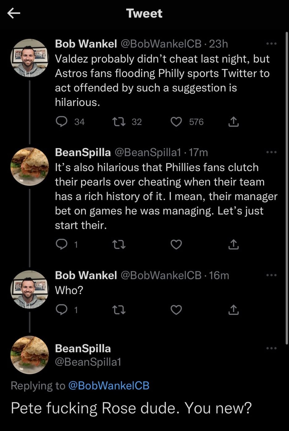 Astros Fan with Sandwich Avatar Thinks Pete Rose Managed the Phillies
