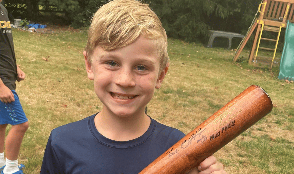 On June 25th, the SAME day Harper broke his thumb after being hit by a pitch, 9-yr-old Sam D'Lauro was ALSO hit by a pitch, suffering the SAME INJURY. His teammates wrote a letter to Harper and today Sam got a personalized autographed bat in the mail! pic.twitter.com/cZfDgbdVEv— Jamie Apody (@JamieApody) August 30, 2022