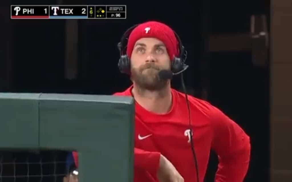 Bryce Harper did an interview with the ESPN crew during the sixth inning of Sunday night’s game. He looked absolutely thrilled to be doing it (thick sarcasm).