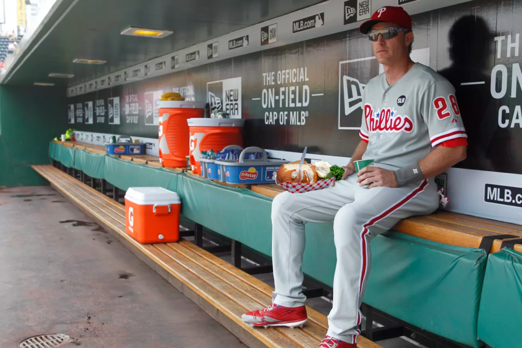 This also explains something else. I swear, not once, can I specifically remember a moment when Chase Utley swung at the first pitch. According to Baseball Reference, Chase Utley took a cut at 15.2% of first pitches in his career. The MLB average is 27.5%. I always thought Chase was just sticking to the “make him throw a strike” adage, but maybe he was just buying the guy behind him time to finish his soup.
