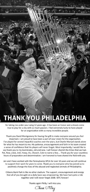 Chase Utley Took out an Ad Thanking Fans in The Inquirer and Daily News Today