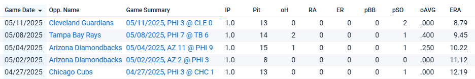 In four May games, it’s three hits allowed on 50 pitches, no earned runs, four strikeouts, zero walks. Throw in the Chicago save on April 27th and it’s five clean outings in a row. He’s pulled his ERA down to 8.79 from a hideous 15.26 after that debacle of a Marlins game in mid-April.