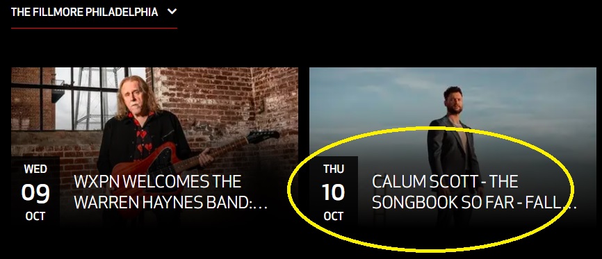 Calum Scott is coming to the Fillmore on Thursday night, 24 hours after the Phillies’ playoff elimination at the hands of the Mets:
