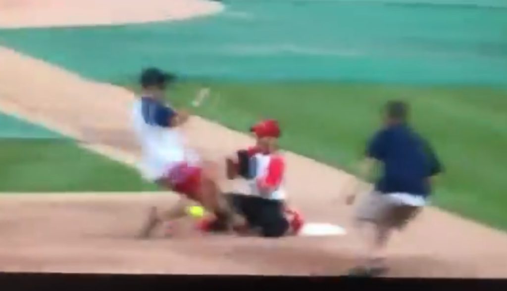 Who does that at a charity softball game? Just let yourself be tagged out, don’t run over the sports anchor playing third base. You don’t wanna be the one dude who is trying too hard at the meaningless media game.