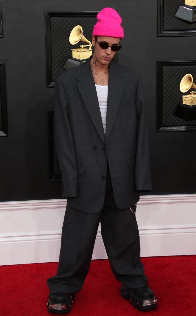 By the way, that’s a fantastic outfit Biebs is wearing in the header photo. Pink beanie with what looks like a “guinea tee,” as Kacie McDonnell once said, underneath an oversized suit. Wish I had thought of that. I would have worn it to prom.