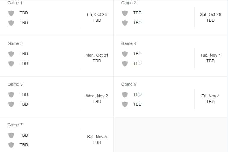 The first off day is next Sunday, the 30th. The 6-0 Eagles host the Steelers at 1 p.m. that day and the Union will host NYC FC in the Eastern Conference Finals later. No start time yet for that game. If the series goes past Game 5, there’s an Eagles game IN HOUSTON on Thursday, November 3rd, and if the series goes to seven games and the Union beat NYC, there’s a chance we could have two Philadelphia teams playing for championships on the same day.