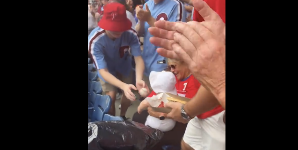 You won’t see this leading the national news. Where are the headlines about heroic Phillies fans giving a baby a moment they’ll never forget (or remember)???