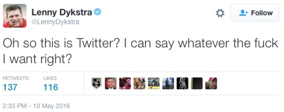 — Lenny Dykstra (@LennyDykstra) May 10, 2016