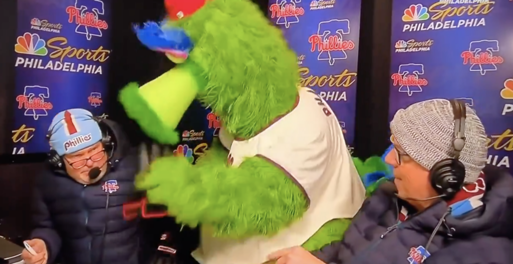 Kruk is firing on all cylinders early in the season. We’ve had a ton of highlights in only five games. Just last night he talked about his enemy the Phanatic catching fire: