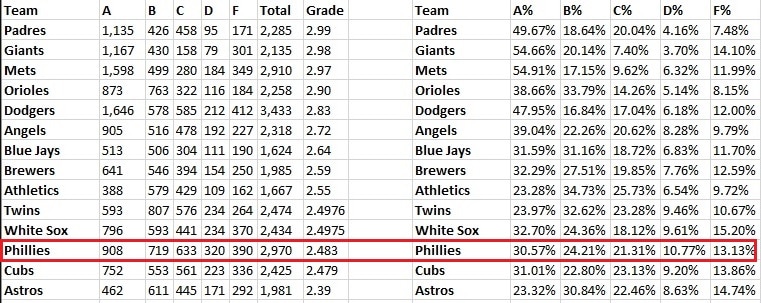 The Phils got a 2.483 this year, their highest number obviously, which means most people rated them somewhere around an A- or a B+. That doesn’t seem to reflect the comments I read on Facebook or Twitter, where most of the replies went something like this: