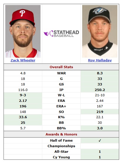 For what it’s worth, Wheeler’s current numbers really aren’t that far off from what Halladay did during his 2010 Cy Young season in Philadelphia (via Baseball Reference) –