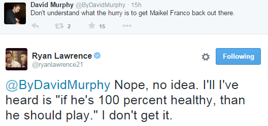 Both David Murphy and Ryan Lawrence displayed something on Twitter that the Phillies seem to have a lack of: Common sense. Franco is your best young star (non-pitcher category) and has already committed to playing winter ball to keep loose/get better in the off-season. It’s not like he doesn’t improve the team. From Lawrence’s report:
