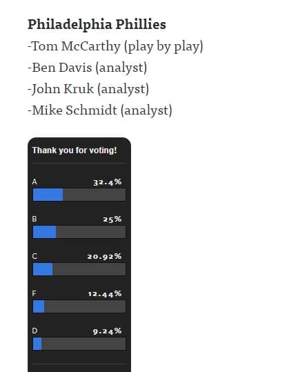 Every year, Awful Announcing runs a poll where fans are invited to rate their local baseball team’s broadcast crew.