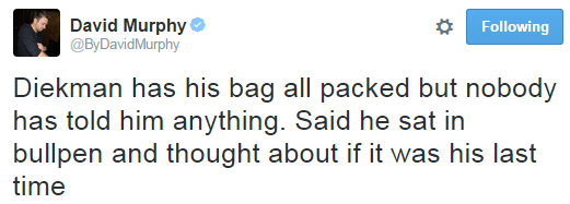 We all had a nice laugh at the Mets for their awkward trade-then-no-trade situation, but couldn’t someone have told Diekman it was totally cool if he wanted to stay home? Hamels didn’t have to be there. And yea, Diekman isn’t Hamels, but he’s still a man. With feelings. And it was all very, very awkward.