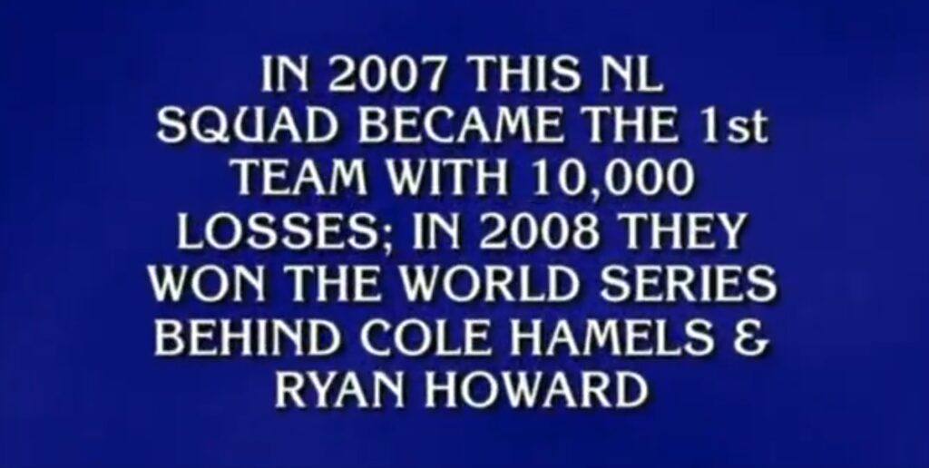 Nobody on today’s episode of Jeopardy knew who won the 2008 World Series.