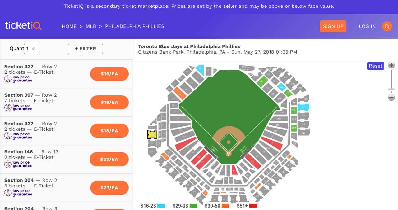 The Phillies are remarkably in second place in the NL East at 28-20, and with a west coast trip on the horizon, why not let Ticket IQ get you out to a game this weekend? We’ve been partnered for quite some time with TicketIQ, the best secondary ticket vendor on the market. With their “Low Price Guarantee”, they’re confident that they can offer you the best tickets at the lowest price.