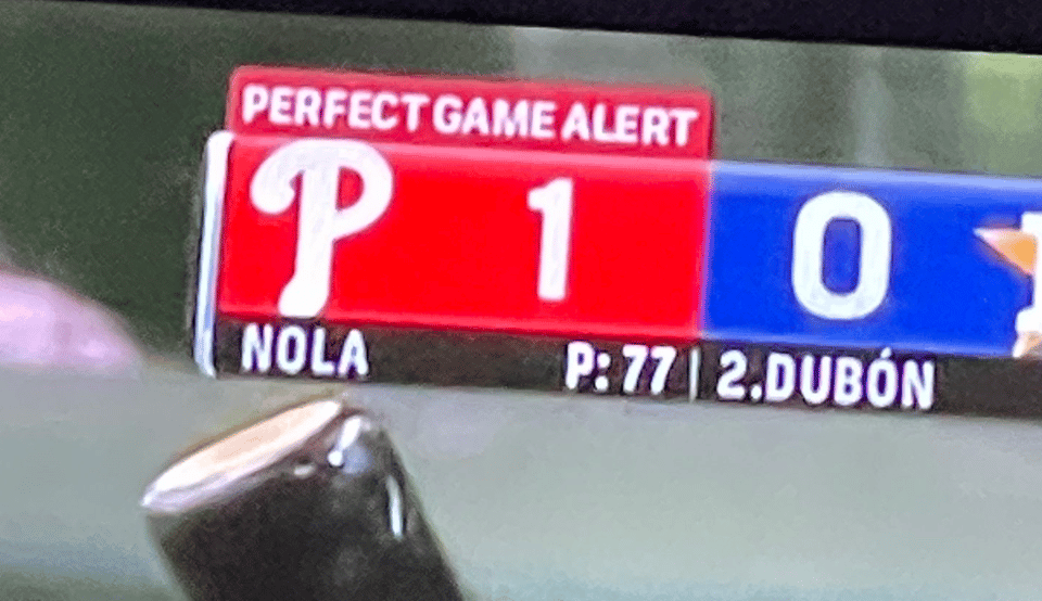 What are we doing here? This has to be the first time a team’s network has openly rooted against their own player to make history. Don’t tell me people needed that so they would stay on the game. Every Phillies fan has three different apps that told them Nola was perfect through six. It’s like Aaron Judge dropping in during college football on Saturday. It’s 2022. We know Judge is going for the AL record. If we want to find his at-bats we’ll do it. We didn’t need that or Michael Barkann making himself dizzier than Tua last Thursday: