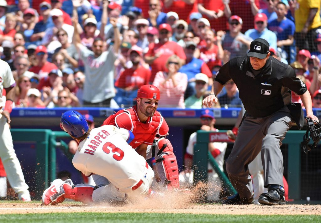 - Bryce Harper, who made a terrific charge at the plate to score the second run, had to do so only because he didn’t run hard on contact. He admitted after the game that he got caught looking at the play.