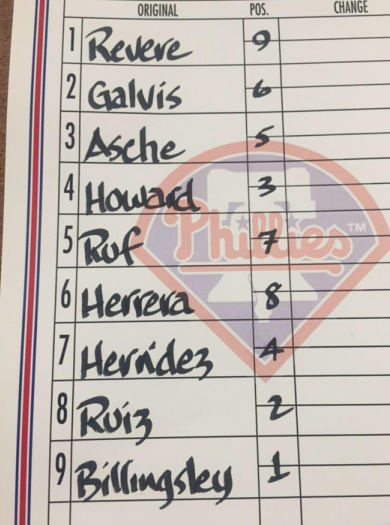 Fun fact: That lineup image came from the Phillies’ private media Twitter account (@PhilsMediaInfo), which has to be the most asinine thing in existence. Like, they posted the lineup to media members exclusively, and not to fans, in 2015. Amazeballs.