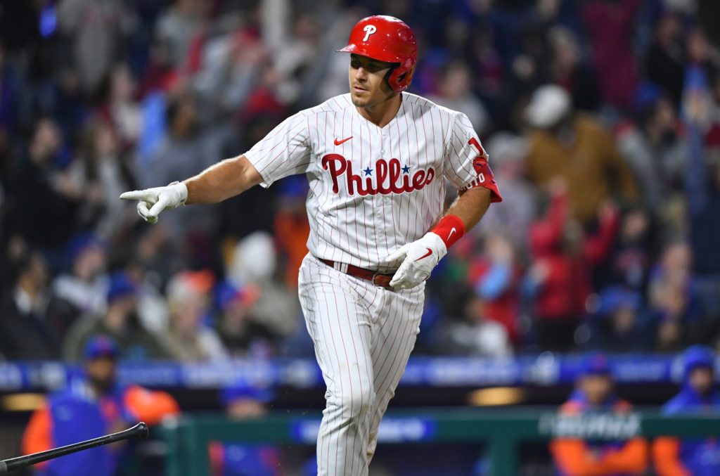 J.T. Realmuto hit a two-run home run on Monday night as part of the rally that saw the Phillies come from behind and take out the pitiful New York Mets. Big moment for him, having come into the game with just one hit in the Oakland series.