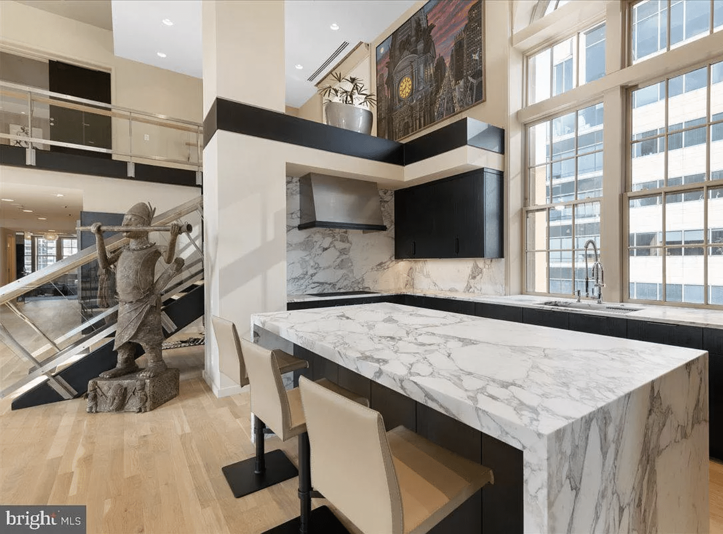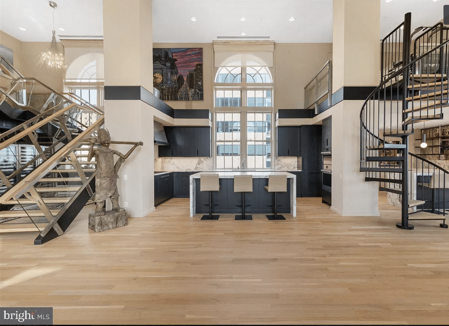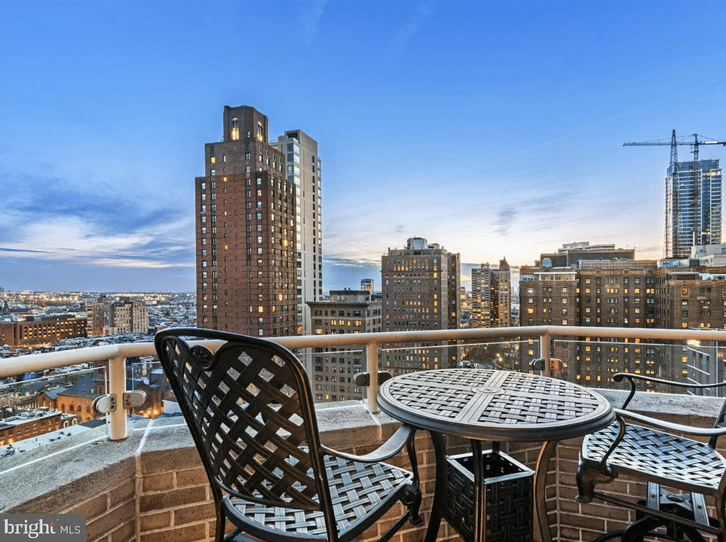 ….the bi-level unit has panoramic Center City views and features three bedrooms, three and a half bathrooms, two private terraces and direct elevator access from the lobby. Built in 1929 as a private men’s club known as the University Club, the building was renovated in 2003 into 18 full-floor residences.