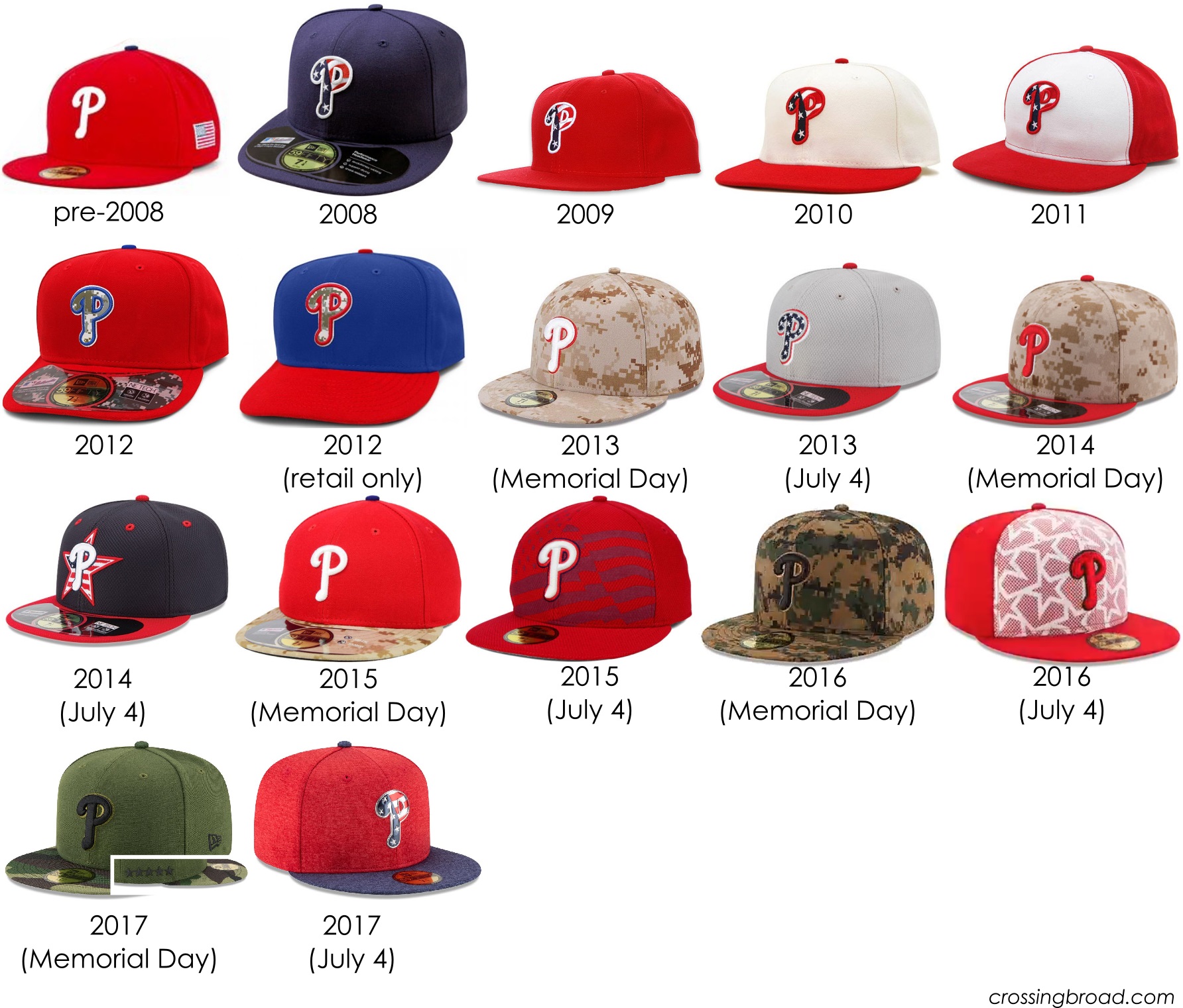 Just like last year, MLB and the Phillies have special uniforms and hats for Mother’s Day, Memorial Day, Father’s Day, the Fourth of July, and the All-Star Game. One change this year is that the special uniforms will be worn the entire holiday weekends instead of just the namesake days. Also, due to the “official sock of…” sponsorship, Stance has provided custom socks for each of the holidays which you can see on the Sportslogos.net writeup.