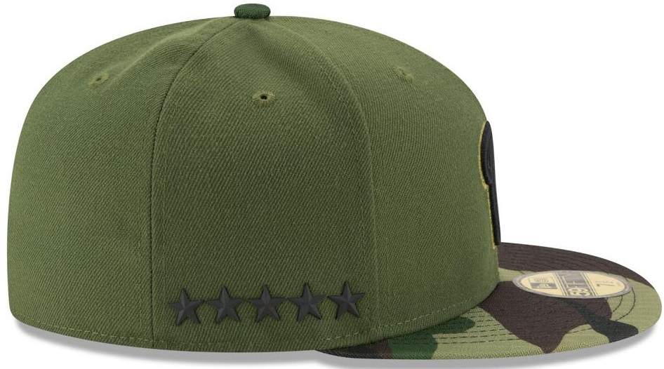 Like last year, no team colors to be found, but the slightly less prominent camouflage and solid olive color gives it a bit more of a military feel, I suppose. Five stars on the right side for the five branches of the military (when you kind of cheat and include the Coast Guard as part of the military and not Department of Homeland Security). Oddly, the Blue Jays have four maple leaves (well, maple leaves aren’t odd… just Canadian), though they have three military branches. So, I suppose the fourth is for the, uh, Mounties?