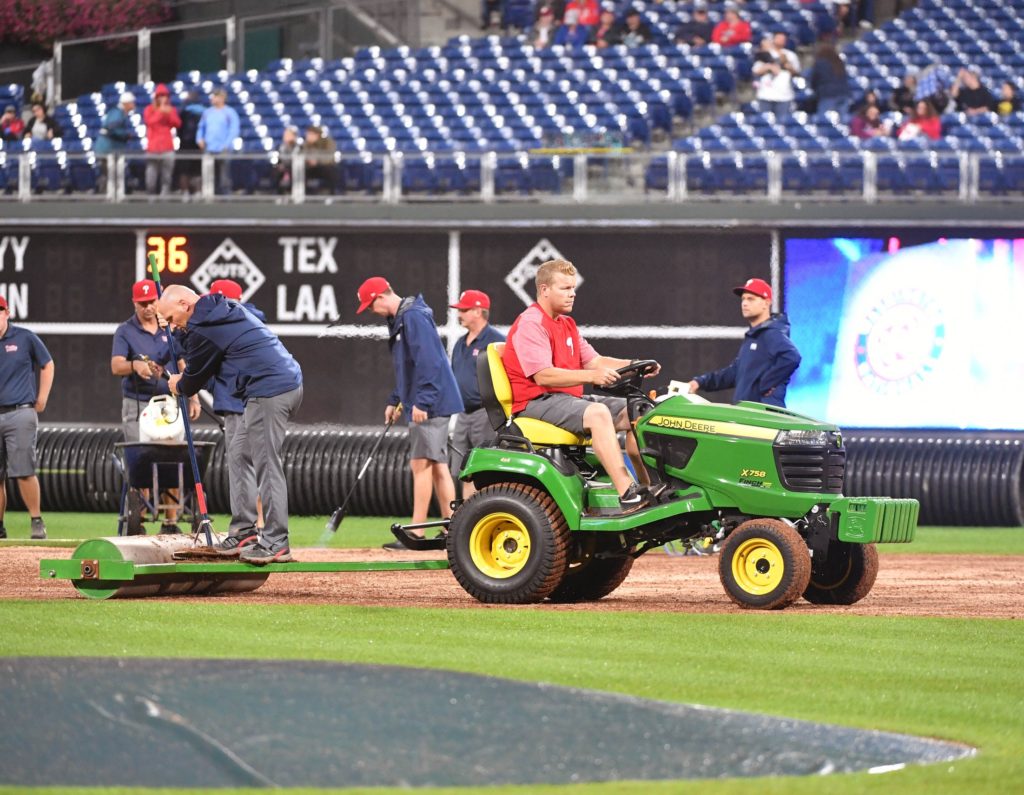 In the longer view, one of the Nationals who spent the most time toeing the infield dirt while the grounds crew tried to salvage the night was soon-to-be free agent outfielder Bryce Harper. If the Phillies have any sincere interest in trying to sign Harper, this really wasn’t the best advertisement for the Phillie experience — especially since Harper has previously been betrayed by poor field conditions in the recent past.