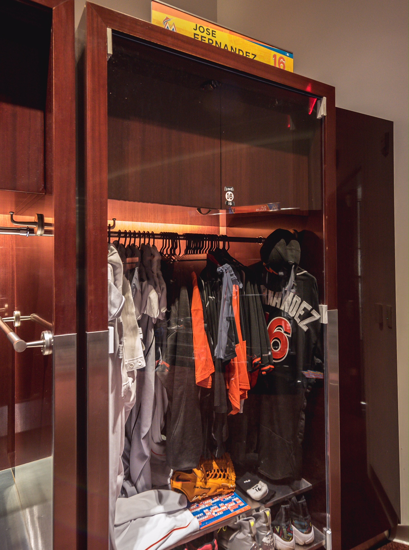 Catcher AJ Ellis spent the final two months with the Phillies last season and is now the Marlins’ backup catcher. His locker is directly across from Jose’s locker, which has been memorialized behind a sheet Plexiglas since his death: