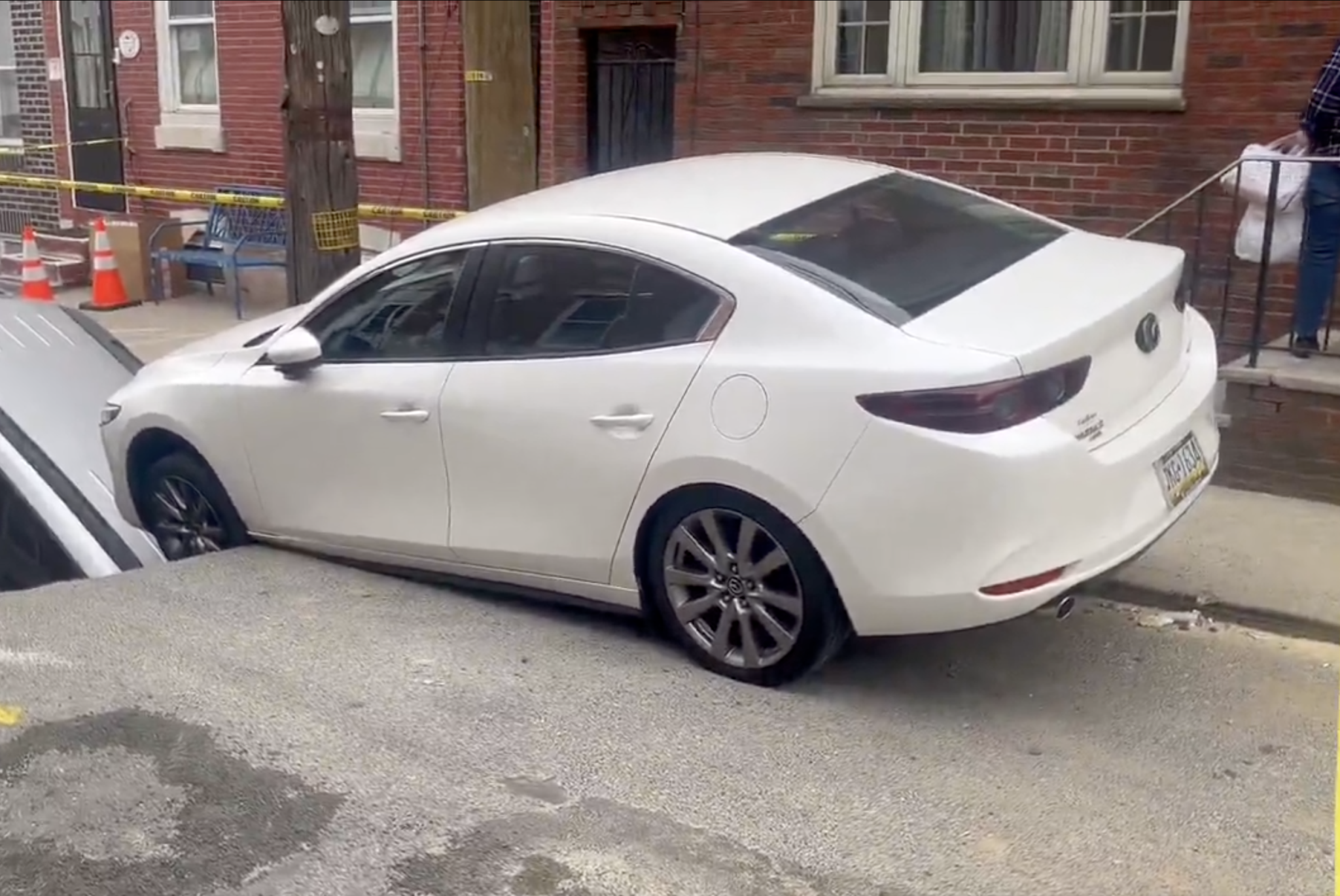 The moment part of Birch Street in Philadelphia’s Port Richmond neighborhood caved in underneath two parked vehicles, 12:52pm today. No one was in the vehicles or walking near them. Repairs are still underway & the Chevy Traverse is still deep down in the sinkhole. pic.twitter.com/gJEmjVYAOJ