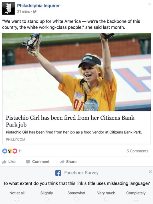 The soup du this fucking year is the whole fake news on Facebook thing, and since Donald Trump won, perhaps because half the country read about a world that isn’t real, they are cracking down on things and asking you if questionable stories are actually real. I guess famous pistachio girl getting fired for being a white nationalist was just a little bit too questionable for some algorithm.