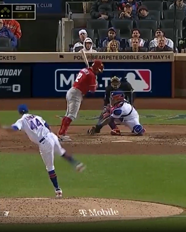 This happened in the top of the ninth, one inning after Francisco Lindor was hit. Lopez didn’t actually hit Schwarber, but both benches were warned, and then he went on to hit Alec Bohm with a curveball one batter later.
