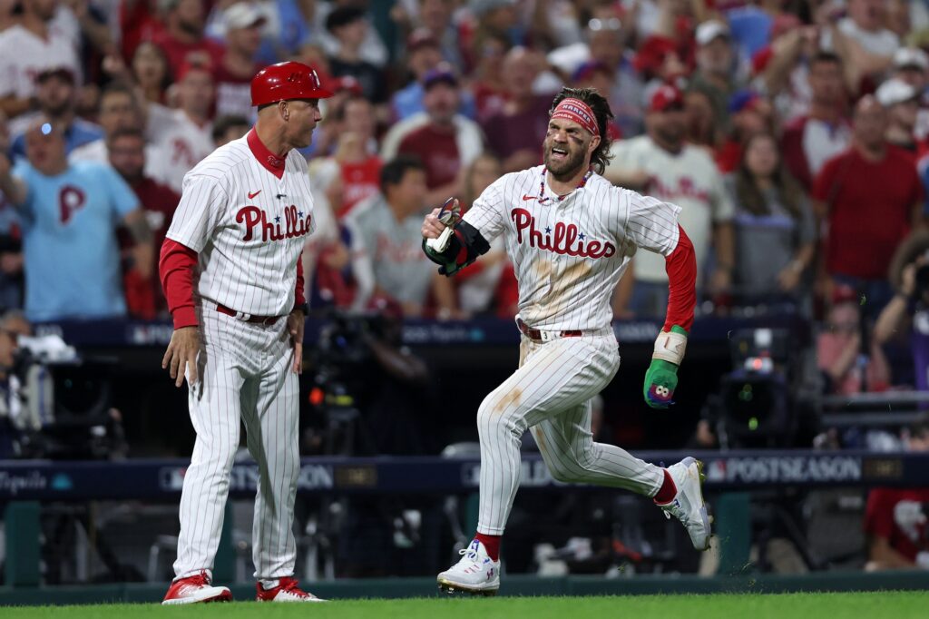 Tough game for Phillies third base coach Dusty Wathan. I thought he might have to escape Citizens Bank Park in Taylor Swift’s popcorn machine after holding Kyle Schwarber (might have been safe), sending Nick Castellanos (tagged out), and then watching Bryce Harper blow through his stop sign like it was a wet paper bag. Bryce, being the consummate team guy that he is, wasn’t going to criticize Wathan after the game: