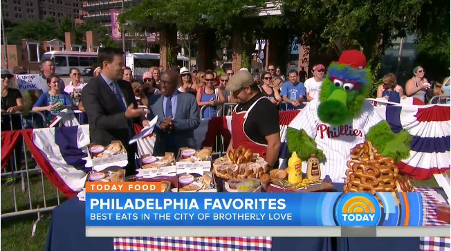 Talk about an all-star lineup: the Phillie Phanatic, Al Roker (the Phillie Phanatic of weathermen), Carson Daly (the Mr. Met of whatever you call his job), and Chef Brian Duffy (the Phyllis to Jon Taffer’s Phil). That’s who the Today Show had this morning talking about Philly food: