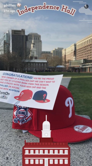 It all appears to be a part of MLB’s #CapsOn hashtag, encouraging baseball fans to… wait for it… wear their caps. Clever. The Phils are also encouraging people to follow them on Snapchat, so there may be more in store if you pay close attention, or they may just be tipping off locations.