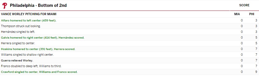 Well, well, well. It appears times have changed. Fast forward to last night, and here was a much different Phillies’ lineup, bolstered by exciting young talent, absolutely bludgeoning old friend Vance Worley off the mound at Citizen’s Bank Park. Poor bastard never stood a chance.