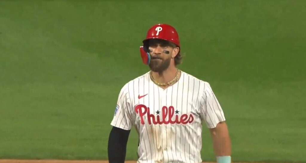 Bryce Harper looked like he was going to kill someone after Edwin Uceta hit Nick Castellanos on Tuesday night, resulting in the benches clearing at Citizens Bank Park: