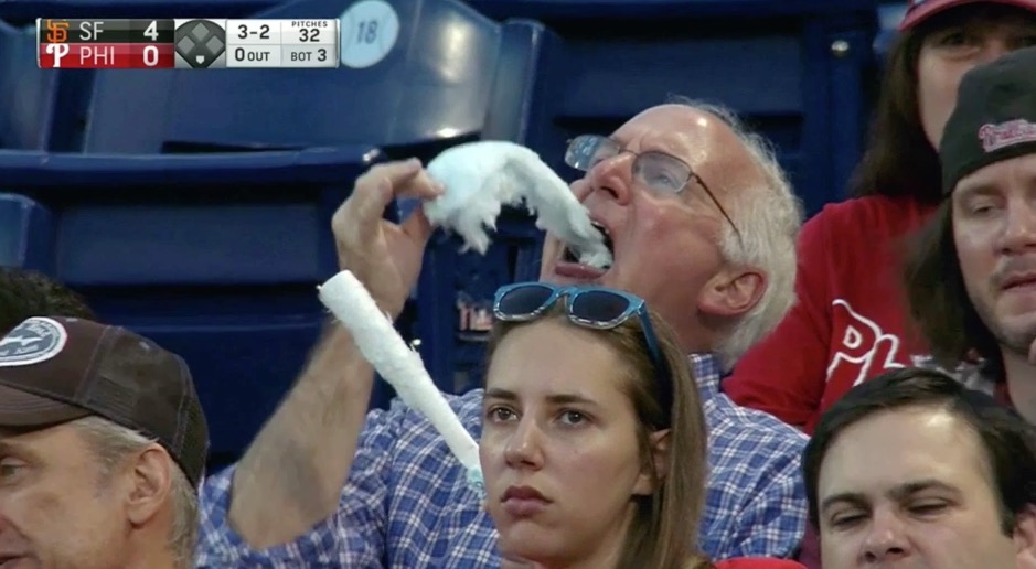 The Giants’ broadcast caught a Phillies fan just devouring cotton candy last night. Just watch the video and then we’ll talk: