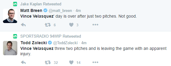 Vince Velasquez Exits Phillies Start After Two Pitches