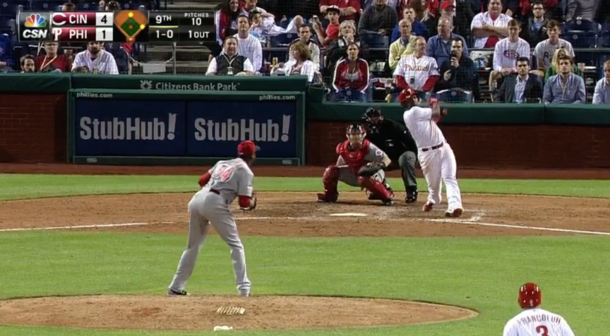 Second night in a row Franco has hit a late-innings home run to tie the game. He also broke up Mike Leake’s no-hitter in the seventh. He’s better than former third baseman and newfangled left fielder Cody Asche.