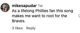 The worst part is this guy has my IG algorithm in a chokehold. Every now and then he’ll pop back up with this song dubbed over a video. I can’t block him either. I need the cringe. It keeps you motivated to never create something so bad that it makes people want to become a Braves fan.